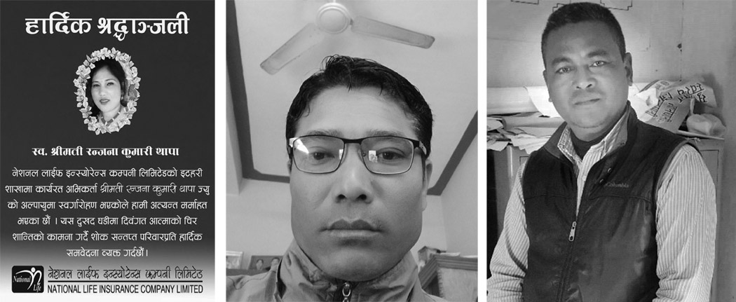 उता, नेशनल लाइफ इन्स्योरेन्स कम्पनीका इटहरी शाखामा कार्यरत रञ्जना कुमारी थापाको कोरोना भाइरसको संक्रमणबाट निधन भएको छ ।