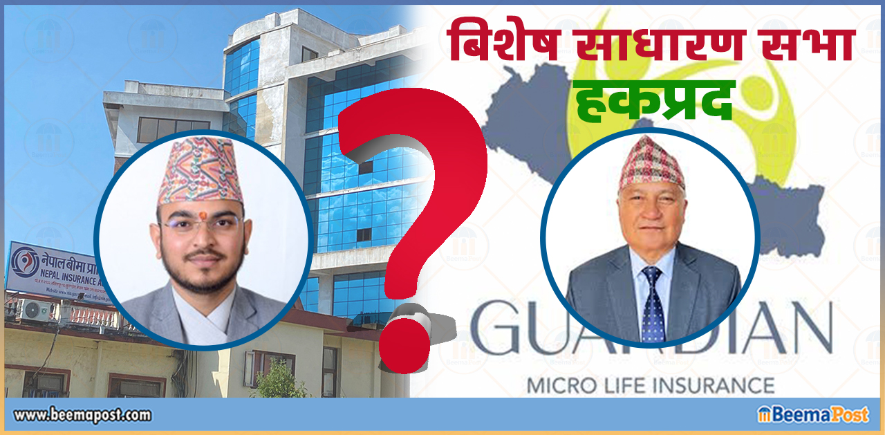 नियामक निकाय नेपाल बीमा प्राधिकरणले गार्डियन माइक्रो लाइफ इन्स्योरेन्सको बिशेष साधारण स्थगन गर्दै हकप्रद सेयर जारी गर्न नपाउने निर्देशन दिएको थियो