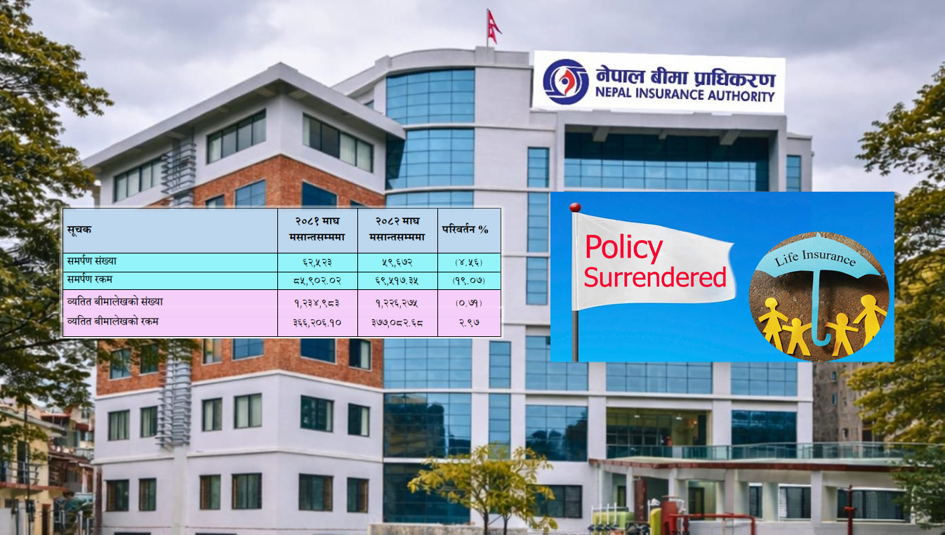 काठमाडौं । नेपाली बीमा कम्पनीहरुको बीमा दावी बक्यौता (बीमा दावी भुक्तानी गर्न बाँकी रकम) आधा खर्ब नाघेको छ । नेपाल बीमा प्राधिकरणले सार्वजनिक गरेको बीमा प्रतिबिम्ब अनुसार चालु आवको माघ महिनासम्मको अवधिमा सञ्चालित १४ जीवन र १४ निर्जीवन बीमा कम्पनीहरुको सो बीमा दावी बक्यौता हो । समीक्षा अवधिमा जीवन र निर्जीवन बीमा कम्पनीहरुको बीमा दावी बक्यौता रकम ५५ अर्ब...