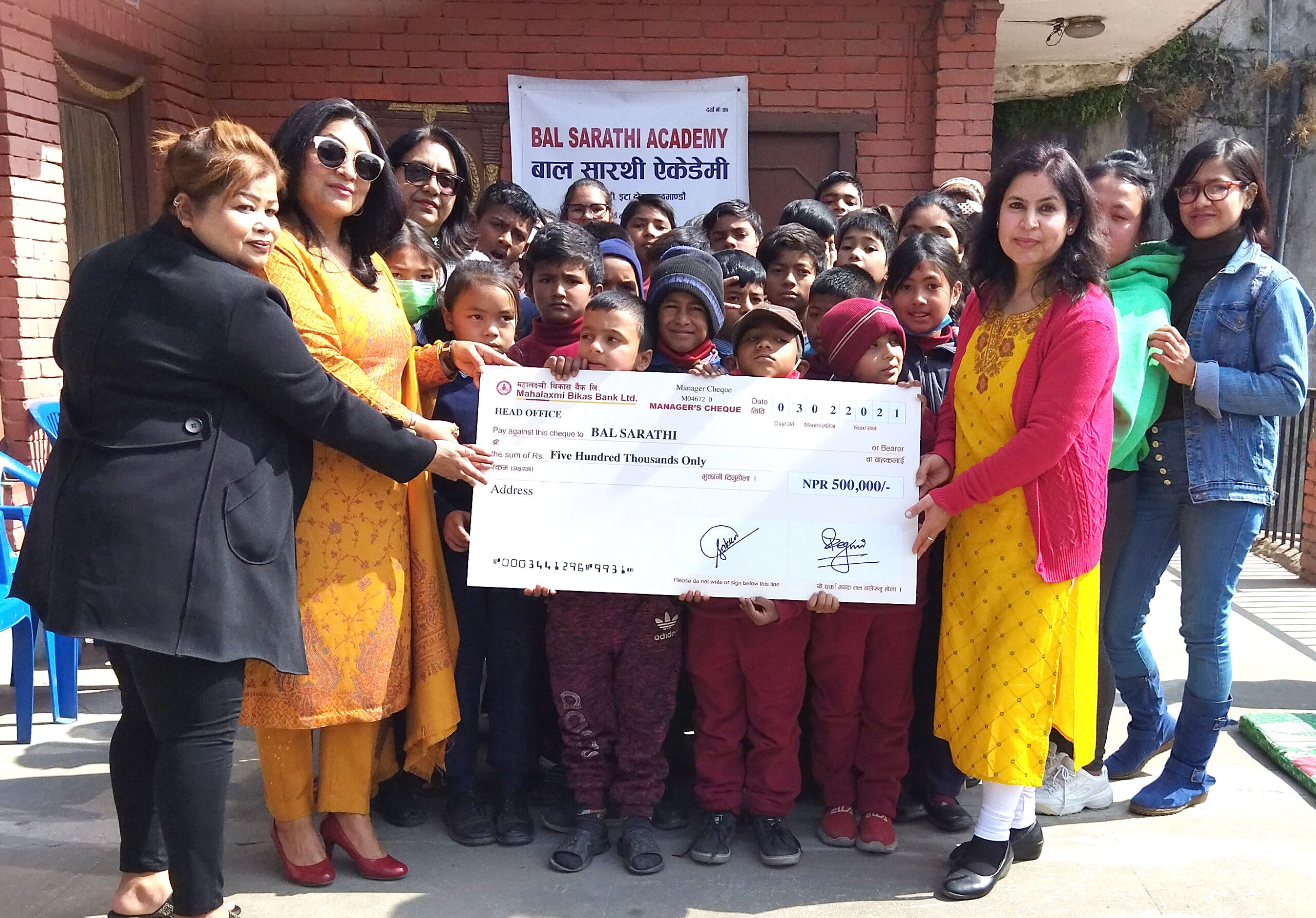 २०७७÷११÷०६ गते बिहिबार बाल सारथीको कार्यालयमा सम्पन्न कार्यक्रममा बैंकको बजार व्यवस्थापन विभागकी प्रमुख दिपान्जली खकुरेलले बाल सारथी संस्थाकी अध्यक्ष अस्मिता सुमार्गीलाई रु. पाँच लाखको चेक हस्तान्तरण गर्दै सहयोग गरेको हो । उक्त अवसरमा