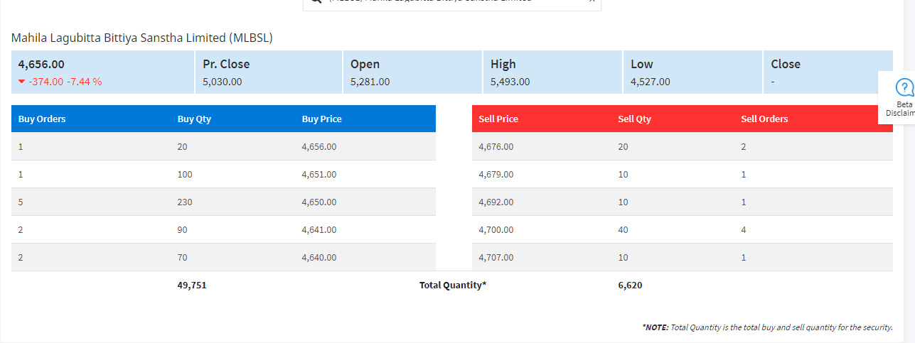 महिला लघुवित्तको शेयर मूल्य ७ प्रतिशतले घट्यो