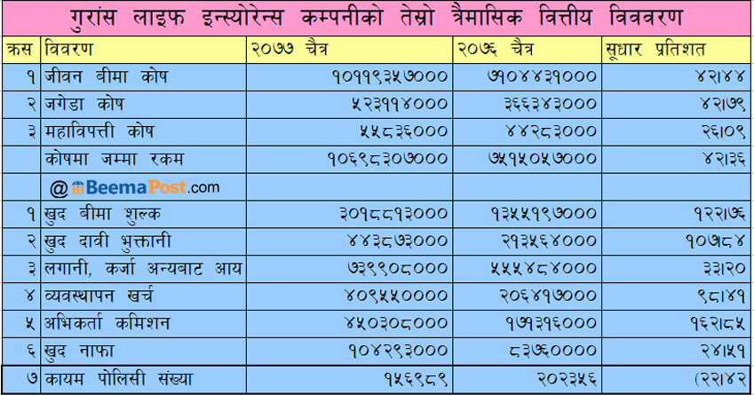 तेस्रो त्रैमासिक समीक्षाः गुराँस लाइफको बीमा व्यवसायमा छलाङ