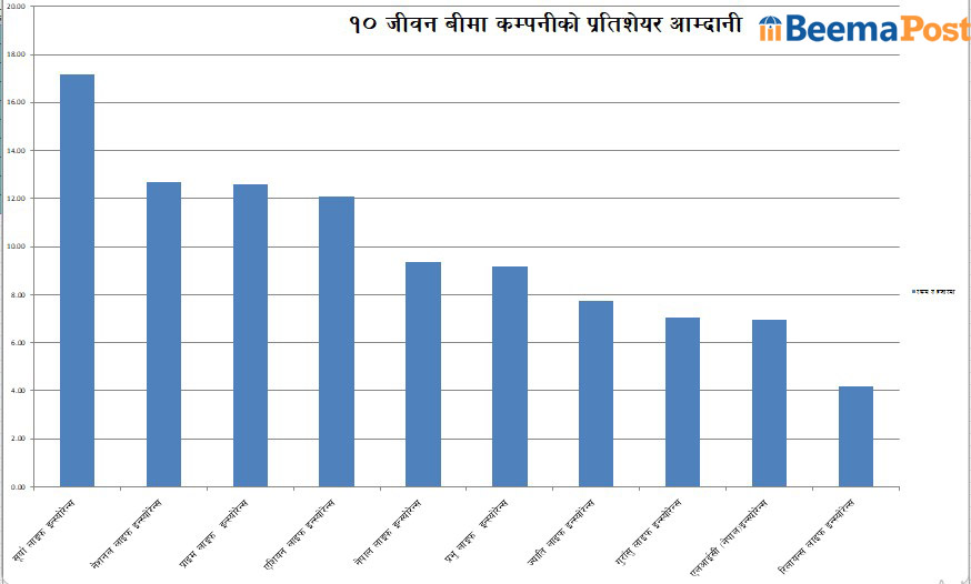 नेपाल लाइफ, प्रभु लाइफको प्रतिशेयर आम्दानी ९ रुपैयाँ रहेको छ । सबैभन्दा कम भने रिलायन्स लाइफको ४ रुपैयाँ १७ पैसा कायम भएको छ ।