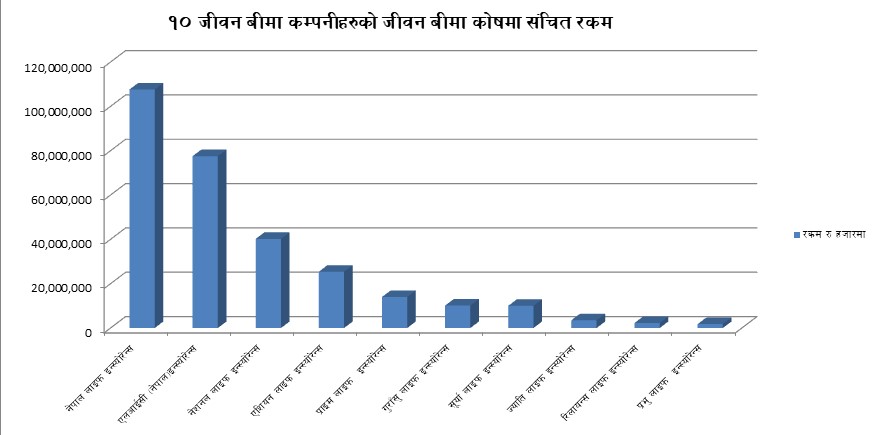 जीवन बीमा कोष र जगेडा कोषमा नेपाल लाइफले सबैभन्दा धेरै रकम संचित रहेको छ । नेपाल लाइफको जीवन बीमा कोषमा एक खर्ब ७ अर्ब रुपैयाँ र जगेडा कोषमा अर्ब अर्ब १२ करोड रुपैयाँ रकम संचित रहेको छ ।