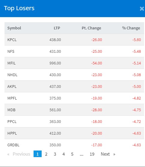 त्यस्तै कालिका पावर कम्पनीकोे ५ दशमलव ६० प्रतिशतले शेयर भाउ घटेको छ।नेपाल फाइनान्सको ५ दशमलव ४८ प्रतिशत, मन्जुश्री पाइनान्सको ५ दशमलव १४ प्रतिशत, नेपाल हाईड्रो डेभलपर्सको ५ दशमलव ०८ र अरुण काबेली पावरको ५ दशमलव अकंले शेयर भाउ घटेको छ ।