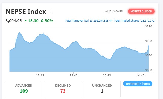 नेप्से १५ अंकले बढ्दा १३ अर्ब माथिको कारोबार, यूनाईटेड मोदी हाइड्रोपावरको सर्वाधिक कारोबार