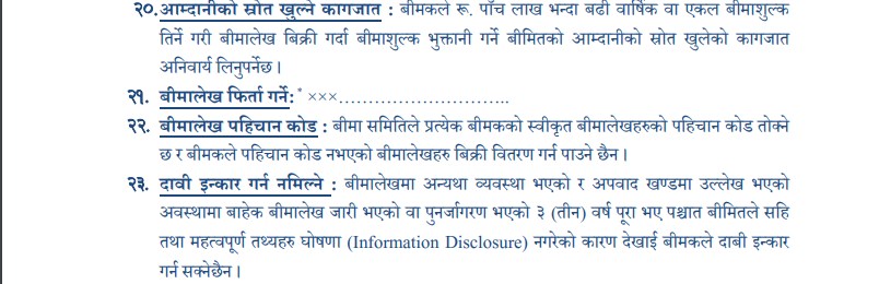 बीमा समितिले सो सम्बन्धमा थप जानकारी दिन चाहेको छैन । हिजो जारी गरिएको निर्देशिकाको दफा नं २१ अन्तर्गत उपदफा १, २ र ३ मा बीमा पोलिसी रद्द गर्न सक्ने व्यवस्था थियो ।