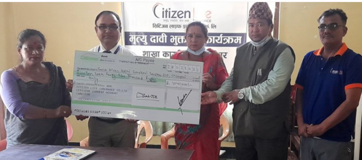 सिटिजन्स लाइफ इन्स्योरेन्सद्धारा बीमा दाबी भुक्तानी