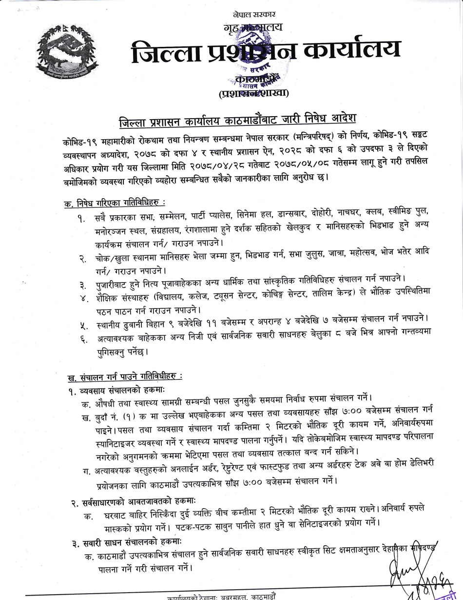 आगामी भदौं ८ गतेसम्म जारी रहने आदेश अनुसार काठमाडौं उपत्यकामा थप कडाई गर्ने निर्णय गरेको हो ।