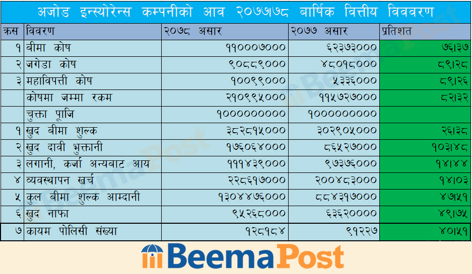 वित्तीय विवरणमा देखियो अजोडको प्रगति, खुद नाफा ५० प्रतिशतले बृद्धि, १३० करोडको बीमा कारोबार