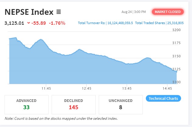 नेप्से ५५ अंकले घट्दा पनि १६ अर्ब माथिकै कारोबार, अरुण भ्याली हाइड्रोपावरको सर्वाधिक