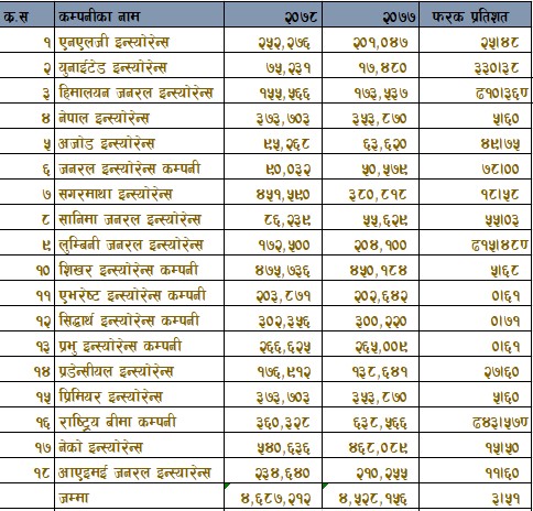 १८ निर्जिवन बीमा कम्पनीको मुनाफा वृद्धि खुम्चियो, १२ प्रतिशतको वृद्धिदर ३ प्रतिशतमा सीमित