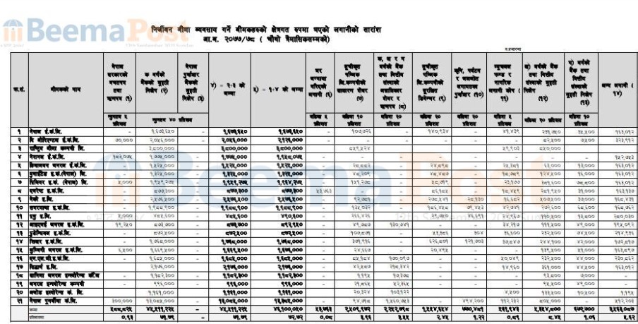 पुनर्बीमा कम्पनी सहित २० निर्जीवन बीमा कम्पनीहको ६३ अर्ब ३९ करोड करोडको लगानी, कुन क्षेत्रमा कति?