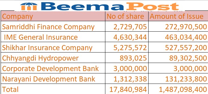 आधा दर्जन कम्पनीले हकप्रद शेयर निष्काशन गर्दै, कुन कम्पनीको कति कित्ता?