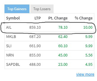 यो समाचार तयार पार्दासम्म कम्पनीको शेयर सोही प्रतिशतले बृद्धि भई ८५९ रुपैयाँ १० पैसा पुगेको छ ।