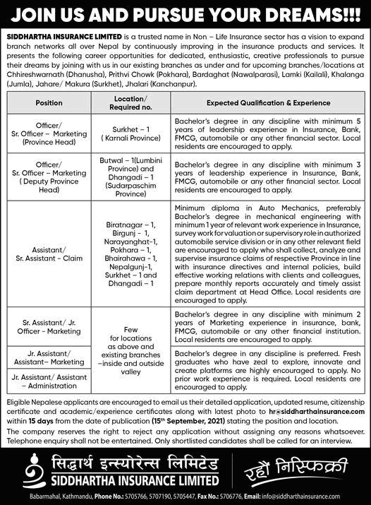 सिद्धार्थ इन्स्योरेन्सले माग्यो ठूलो संख्यामा कर्मचारी, कति चाहिन्छ शैक्षिक योग्यता ?