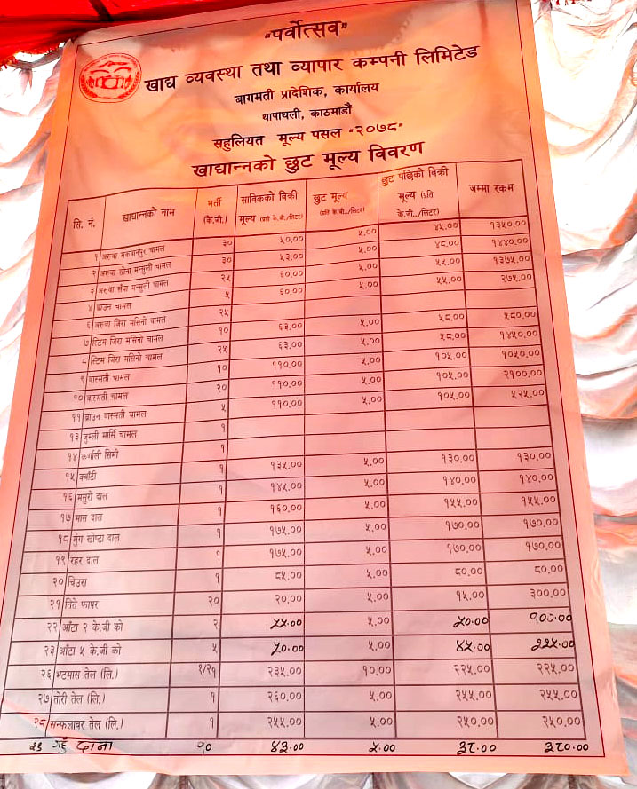 सहुलियत मूल्य पसल आजदेखि संचालनमा, कुन सामाग्रीमा कति छुट ?