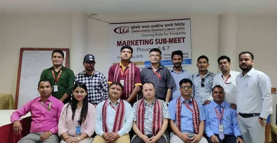 लुम्बिनी जनरल इन्स्योरेन्स कम्पनको जुम्ला, रुकुम, सुर्खेत, नेपालगन्ज, दिपायल, बझाङ, महेन्द्र, लम्की, धनगढी, नेपालगन्ज शाखाका प्रमुख र मार्केटिङ विभागका कर्मचारीहरुलाई कम्पनीलाई तालिम तथा मार्केटिङ रणनीति सम्बन्धी छलफल गरिएको कम्पनीले जनाएको छ ।