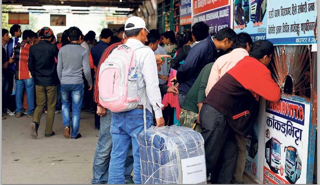 यातायाता ब्यवसायी उपभोक्ता अधिकारकर्मी र ट्राफिक प्रहरीबीचको बैंठकले दशैमा घर जाने यात्रुका लागि भोलिबाट सार्वजनिक यातायातक अग्रिम टिकट खुला गर्ने निर्णय गरेको हो । यातायात ब्यवस्था विभागले दशैंमा काठमाडौं उपत्यका छोडेर जानेको सख्या बढने भएकाले सहजताका लागि सधैका बर्ष झै यो बर्ष पनि अग्रिम टिकट खुला गरेको हो ।