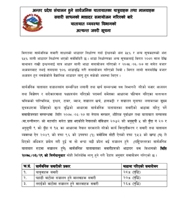 भाडादरको सूची हेर्न यहाँ किल्क गर्नुहोला,