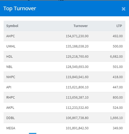 त्यस्तै, युनाइटेड मोदी हाइड्रोपावरको १३ करोड ५१ लाख, हिमालयन डिस्टिलरीको १२ करोड ९२ लाख, नबिल बैंकको १२ करोड ८५ लाख र नेशनल हाइड्रोपावरको ११ करोड ९८ लाख भन्दा माथिको कारोबार भएको छ ।