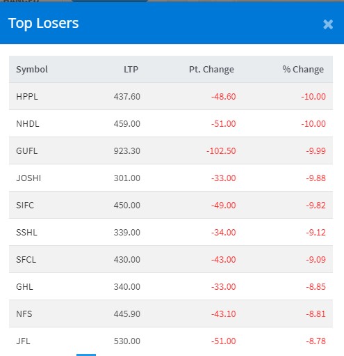 त्यस्तै, आज हिमालयन पावर पाट्नर, नेपाल हाईड्रो डेब्लोपर, गोर्खास फाइनान्स, जोशि हाईड्रोपावर र श्री इन्भेष्टमेन्ट फाइनान्सको शेयरमा नकारात्मक सर्किट लागेको छ ।