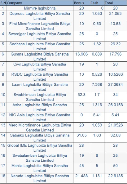 नेप्सेमा सूचीकृत १८ लघुवित्तको लाभांश घोषणा, तपाईले लगानी गरेको कम्पनीले कति दिँदैछ ?
