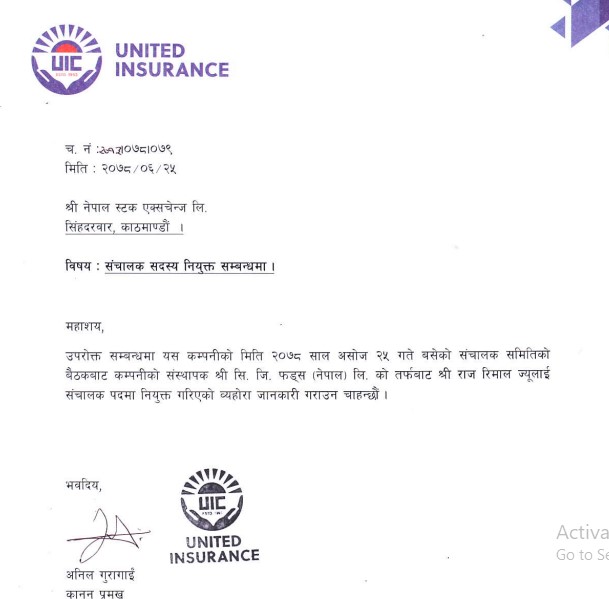युनाइटेड इन्स्योरेन्सको संचालकमा राज रिमाल नियुक्त