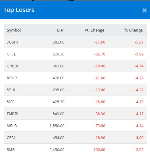 त्यस्तै, आज घट्ने कम्पनीहरुमा जोशी हाइड्रोपावरको ५.८७ प्रतिशत अंक, गुडविल फाइनान्सको ५.०९ प्रतिशत अंक र ग्रीन डेभलपमेन्ट बैंकको ४.७४ प्रतिशत अंकले घटेको छ ।