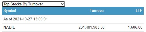 काठमाडौं । साताको चौथो दिन बुधबार शेयर बजार खुलेको दुई घण्टामा नबिल बैंकको सर्वाधिक कारोबार भएको छ । कारोबारमा आएका २२२ कम्पनीमध्ये बैंकको सर्वाधिक कारोबार भएको हो ।