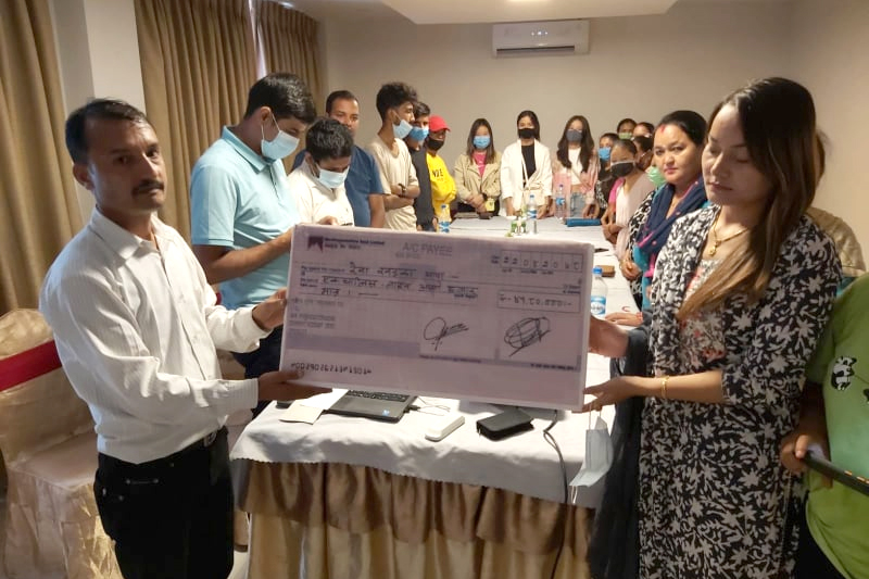 कम्पनीको घोराही शाखाका प्रमुख जनार्दन पौडेलले मृतककी श्रीमती देबा खड्का थापालाई ४१ लाख ८० हजार रुपैयाँ बराबरको चेक हस्तान्तरण गरेको हो । बीमित थापाले गत असारमा ४० लाखको बीमा गराएका थिए ।
