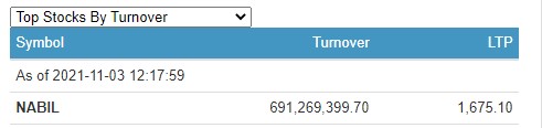 कारोबारमा आएका २१३ कम्पनीमध्ये सर्वाधिक नबिल बैंकको ७० करोड ५५ लाख ६ हजार रुपैयाँ बराबरको कारोबार भएको हो ।