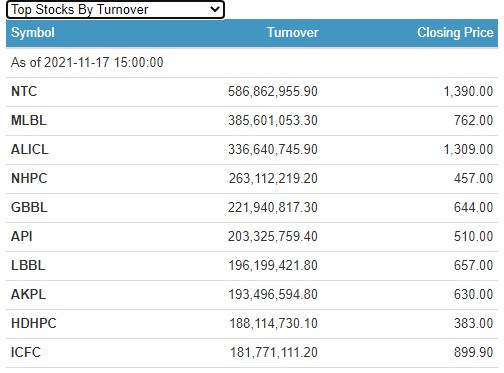 आज नेप्सेमा हरियाली छाउँदा कारोबार समेत बढ्न पुगेको छ । आज सर्वाधिक कारोबार हुने कम्पनीमा नेपाल दूरसंचार (एनटिसी) रहेको छ । कम्पनीको आज एकैदिन ५८ करोड ६८ लाख ६२ हजार ९५५ रुपैयाँको कारोबार भएको हो ।