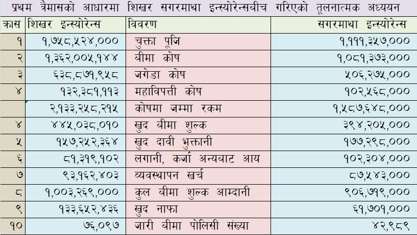 शिखर र सगरमाथा इन्स्योरेन्स कम्पनीबीचमा तुलना गर्दा कसको अवस्था कस्तो ?