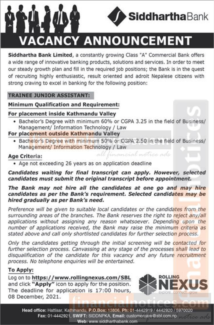 योग्यता पुगेका इच्छुक ब्यक्तिले मंसिर २२ गतेसम्म बैंकको वइबसाइट https://www.rollingnexus.com/sbl मार्फत अनलाइन आवेदन दिन सक्नेछन् ।