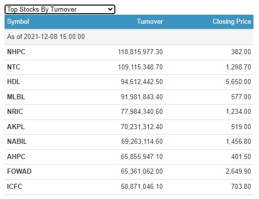 नेशनल हाइड्रोपावर सहित आज सर्वाधिक कारोबार भएका टप १० कम्पनी