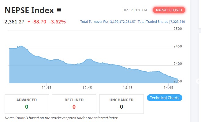 नेप्से ८८ अंकले घट्दा ३ अर्बमाथि शेयर कारोबार, सबै उपसूचक राताम्मे