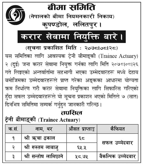 बीमा समितिमा करार सेवाको लागि ट्रेनी बीमाङ्कीमा दुईजना छनोट