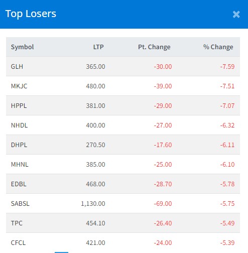 हाइड्रोपावरको शेयरमूल्यमा गिरावट, आज सर्वाधिक क–कसले गुमाए ?
