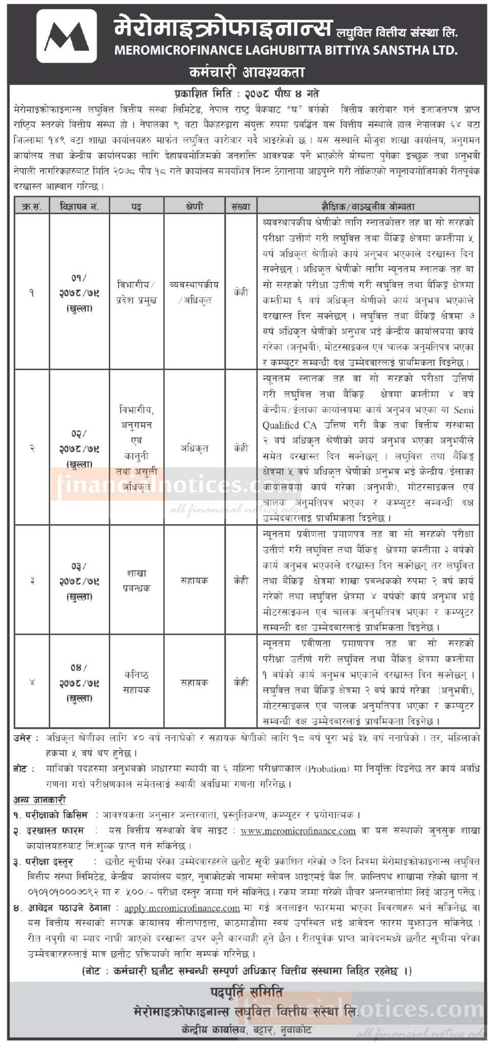 मेरो माइक्रोफाइनान्स लघुवित्तद्धारा कर्मचारी माग, प्लस टु उत्तिर्णलाई पनि अवसर