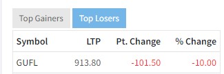 सोमबार सर्वाधिक कारोबार भएको गोर्खाज कम्पनीको शेयर आज १० प्रतिशत अर्थात् १०१ रुपैयाँ ५० पैसाले शेयरमूल्य घटेर ९१३ रुपैयाँ ८० पैसा पुगेको छ ।