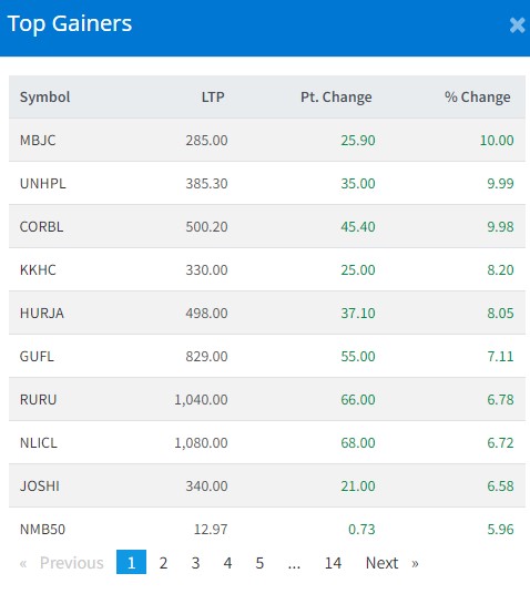 मध्य भोटेकेशी, युनियन हाईड्रोपावर, कर्पोरेट डेभलपमेन्ट बैंक, खानी खोला हाईड्रोपावर र हिमालयन उर्जा विकासका लगानीकर्ताले सर्वाधिक कमाउन सफल भएका छन् ।