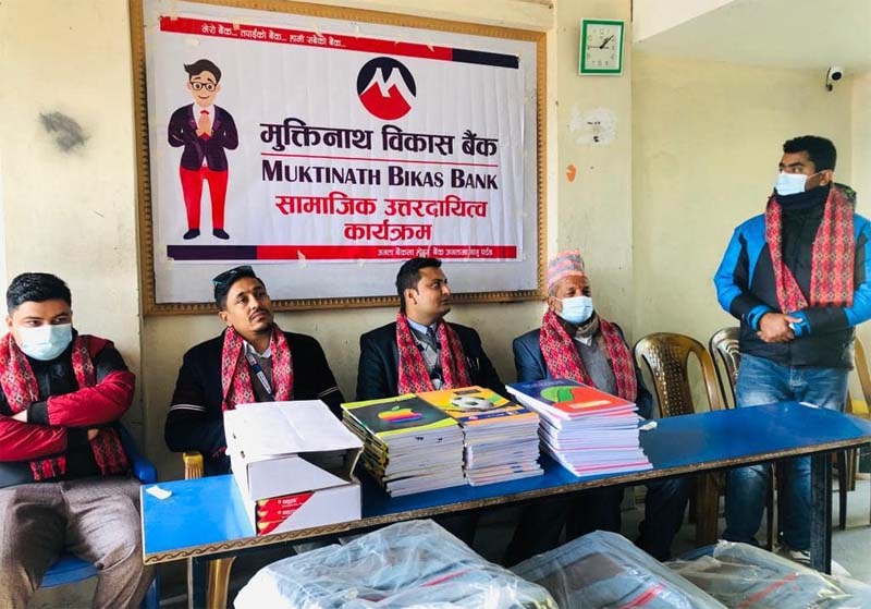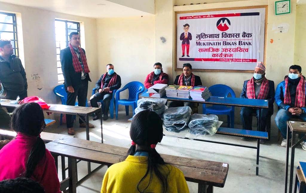 मुक्तिनाथ विकास बैंकद्धारा विद्यार्थीलाई शैक्षिक सामाग्री वितरण
