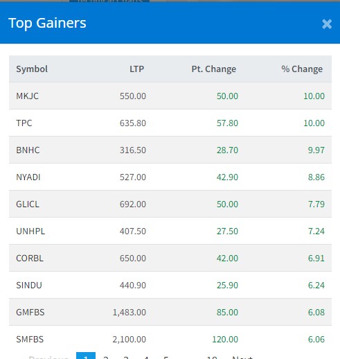 त्यस्तै, न्यादी हाइड्रोपावरको ८.८६ प्रतिशत, गुँरास लाइफ इन्स्योरेन्सको ७.७९ प्रतिशत, यूनियन हाइड्रोपावरको ७.२४ प्रतिशत, कर्पोरेट डेभलपमेन्ट बैंकको ६.९१ र सिन्धु विकास बैंकले ६.२४ प्रतिशतले वृद्धि भएको हो ।
