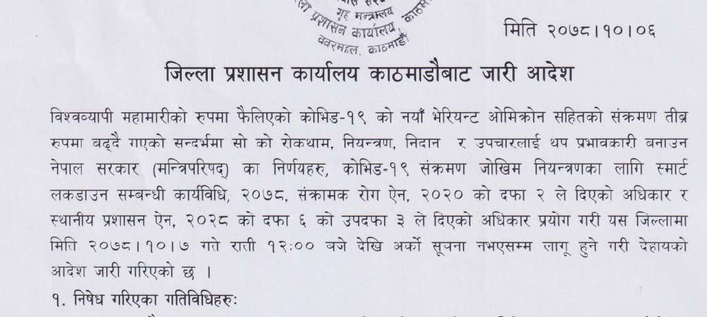 अस्पताल, प्रेस, औषधी, पानी लगायतका अत्यावश्यक सेवाका लागि छुट पाइने छ ।