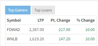 फरवार्डको सोही प्रतिशत अर्थात् २१७ रुपैयाँ र विन नेपालको १४७ रुपैयाँ २० पैसाले बृद्धि भएर शेयरमूल्य फरवार्डको २३८७ रुपैयाँ र विन नेपालको १६१९ रुपैयाँ २० पैसा पुगेको छ ।