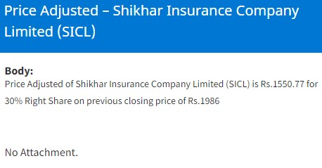 शिखर इन्स्योरेन्स कम्पनीको शेयरमूल्य समायोजन