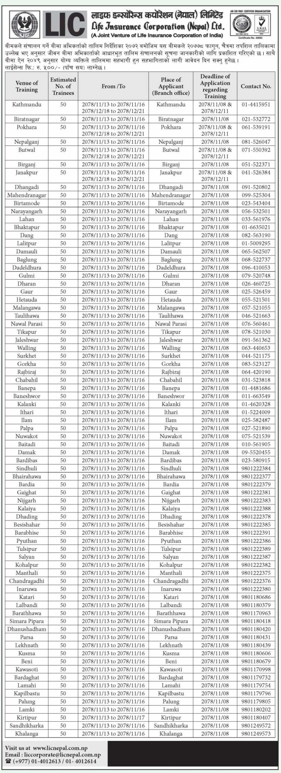 एलआइसी नेपालले ७६ शाखाबाट बीमा अभिकर्ताको तालिम दिने, कहिलेसम्म दिने आवेदन ?