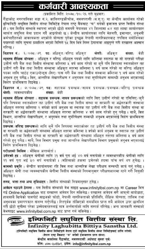 इन्फिनिटी लघुवित्तद्धारा कर्मचारी माग, कति चाहिन्छ शैक्षिक योग्यता ?