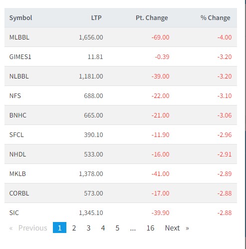 त्यस्तै, ग्लोबल आइएमइए समुन्नतीको ३.२० प्रतिशत, नेरुडे लघुवित्तको ३.२० प्रतिशत, नेपाल फाइनान्सको ३.१० प्रतिशत, बुद्धभुमि नेपाल हाइड्रोपावरको ३.०६ प्रतिशत र समृद्धि फाइनान्सको २.९६ प्रतिशतले घटेको हो ।